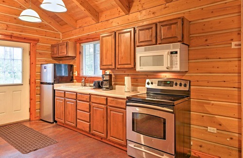La cabina cuenta con una cocina totalmente equipada con todos los electrodomésticos necesarios para compartir una fiesta casera. Grillmasters puede tirar la pesca del día en la parrilla de gas, donde puedes disfrutar de una cena al aire libre en la mesa de picnic cercana.