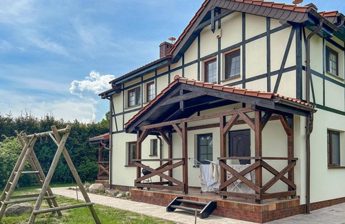 Venga a Debina y pase unas estupendas vacaciones en la costa báltica. La casa, de decoración luminosa y familiar, le ofrece buenas instalaciones y el lugar perfecto para relajarse después de días activos. Por qué no pasar unas horas en el jardín comunitario, donde los más pequeños pueden vivir aventuras en el parque infantil o en la casita de juegos, mientras los adultos pueden encender la barbacoa con una bebida fresca.