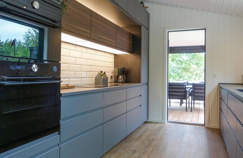 Si quiere disfrutar de verdad de sus vacaciones, ya puede esperar esta casa de lujo. Aquí le esperan interiores modernos y una bonita y consecuente ejecución con deliciosos materiales tanto en el exterior como en el interior. En la cocina podrá desarrollar sus habilidades culinarias a su gusto, ya que no le faltará equipamiento. Con dos hornos, también podrá invitar fácilmente a sus amigos a una gran comida, ¿o tal vez celebrar aquí la Navidad este año? En el salón, tienes mucho espacio alrededor de la mesa de comedor y, cuando hayas dado un largo paseo junto al mar, puedes tumbarte en el sofá y relajarte a gusto. En los días frescos, puedes calentarte junto a la chimenea y ponerte cómodo aquí.