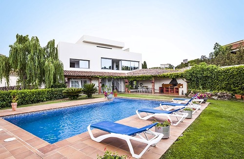Bonita villa de 530 m2 con jardín y piscina privados en una parcela de más de 2000 m2. La casa está construida en estilo moderno con 4 habitaciones, 3 cuartos de baño completos y cocina abierta con barra. Dispone de dos zonas de salón-comedor donde relajarse y disfrutar de las vistas del jardín a través de unos grandes ventanales que aportan mucha luminosidad a las estancias. En el exterior hay una gran zona de barbacoa con mesa y sillas bajo un porche cubierto de madera. La casa está equipada para 12 personas, con estancias amplias y muy luminosas. Garriguella es un pueblecito de l'Alt Empordà muy cerca de Figueres (16 km) y a tan sólo 13 km de las playas de Llançà.