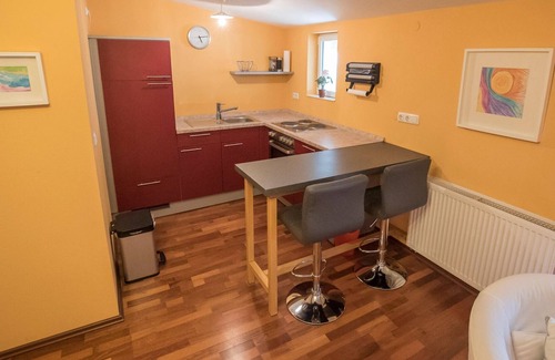 El hermoso apartamento de 1 dormitorio ofrece una cocina americana (estufa eléctrica, refrigerador, utensilios de cocina, vajilla), una sala de estar y dormitorio, que está equipada con una cama plegable masiva, que se puede transformar en poco tiempo en una cama doble acogedora y espaciosa. También hay un pequeño baño con ducha y aseo. Se sirve un desayuno abundante bajo petición y hay conexión Wi-Fi gratuita. En el hermoso Franconian Hofgarten, puede sentarse cómodamente y dejar que el día se desarrolle con una copa de vino de Franconia o una cerveza local. Ya sean ciclistas, motociclistas, excursionistas, vacacionistas, estudiantes, pasantes o empleados. De nada.