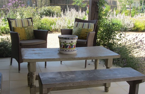 Desde el salón se accede a la terraza cubierta con un pequeño balcón a través de una puerta de balcón doble. Aquí también hay una gran mesa de comedor. Un poco más lejos está la piscina, climatizada a 29 ° y completamente amurallada para garantizar la privacidad. En un edificio anexo restaurado, se instala un acogedor bar y una cocina al aire libre y hay un garaje cerrado con ascensor para los motardos. Por lo tanto, si lo desea, puede jugar con su máquina y está seguro de que su moto está guardada de manera segura. Alrededor de la casa también hay suficiente estacionamiento privado para varios vehículos, posiblemente con remolque.