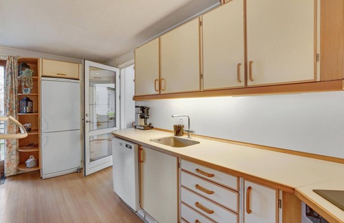 La atractiva casa le espera en una ubicación atractiva en medio de la hermosa naturaleza y a la vista del fiordo. Póngase cómodo aquí con sus seres queridos y regálese un merecido descanso del ajetreo de la vida cotidiana. Las luminosas habitaciones, los ventanales que permiten disfrutar al máximo de las hermosas vistas y los encantadores detalles, como la chimenea de ladrillo, hacen de esta casa de vacaciones un oasis para el perfecto descanso vacacional. Deja que tu mirada se pierda en la pintoresca naturaleza de los alrededores mientras cenáis juntos y luego vuelve a poner en marcha tu circulación con un duelo familiar.