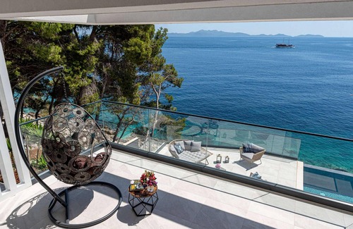La isla de Kor?ula está considerada uno de los destinos insulares más populares del mundo. Con sus hermosas playas, pequeñas islas circundantes, densos bosques y famosos viñedos, la isla ofrece un paisaje increíble. La ciudad de Kor?ula y otros pueblos pintorescos con sus plazas medievales, iglesias, palacios y casas como la casa natal de Marco Polo son ricos en patrimonio cultural. Villa Golden View está situada en el lado sur de la isla. El diseño de la villa garantiza total privacidad y justifica el nombre de "Golden View", ya que ofrece impresionantes vistas al mar desde todos los rincones de la casa. Con su atrio que se extiende en dos plantas y un diseño de planta abierta que combina amplias terrazas exteriores y zonas interiores, transmite la sensación de libertad y lujo. En el nivel superior del atrio se encuentra un salón con terraza, mientras que en el nivel inferior hay una cocina Miele abierta y totalmente equipada, un comedor y una sala de estar, todo ello con acceso directo a la fabulosa terraza de 200 m2 y a la piscina infinita de 50 m2. La terraza exterior ofrece un amplio espacio para relajarse, tomar el sol, leer, hacer barbacoas y cenar al aire libre. Otras amplias terrazas dan al mar y están equipadas con hermosos y cómodos muebles de jardín. La villa tiene 500 m2 de espacio habitable interior y 300 m2 de terrazas, 6 dormitorios con camas king-size, todos con baño en-suite, amplias terrazas o balcones y vistas panorámicas al mar. Uno de los dormitorios puede utilizarse como doble y está un nivel más cerca del mar. Uno de los dormitorios también tiene bañera. No sólo impresiona la arquitectura, sino también el confort y la exclusividad que transmiten los muebles de diseño de alta calidad. La villa está rodeada de hermosos jardines mediterráneos y ofrece 3 plazas de aparcamiento privado. Junto a la casa principal hay un gimnasio totalmente equipado que hará las delicias de los amantes de unas vacaciones activas. Se pueden organizar clases privadas de yoga bajo petición. Las pistas de tenis con o sin entrenador están a 5 minutos en coche. Para los amantes de la naturaleza activa, toda la zona está rodeada de rutas de senderismo y ciclismo. Para los entusiastas del agua, ofrecemos 2 Fanatic Stand Up Paddles y snorkels con la posibilidad de explorar las islas vecinas. El cercano centro de submarinismo ofrece cursos de buceo. Bajo petición, se pueden reservar motos acuáticas o un barco con patrón. Se pueden organizar excursiones de un día a las islas de Lastovo, Mljet, Vis y Hvar. Bienvenido a Villa Golden View y disfrute de unas vacaciones llenas de relax y hedonismo.