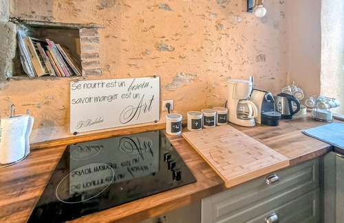 Esta acogedora casa le da la bienvenida con una armoniosa mezcla de comodidad y rusticidad. Los impresionantes techos con vigas de madera, el aspecto de piedra natural y los muebles rústicos crean un ambiente en el que encontrará rápidamente la paz y la tranquilidad. Siéntese y relájese en el sofá con una copa de vino u organice un divertido duelo de cocina y disfrute de los resultados en un ambiente cordial.