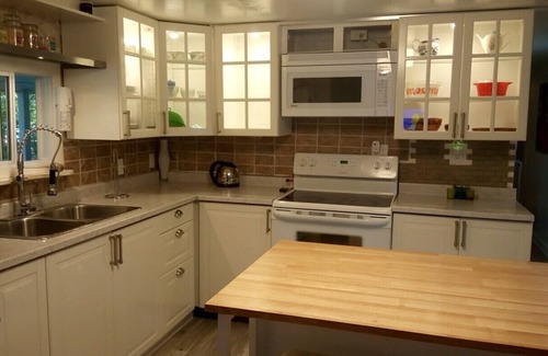 Acogedora, sombreada, cabaña frente al lago en un lote privado de 2 acres, a 15 minutos de las comodidades. Recientemente renovado con 2 dormitorios, baño con bañera y ducha, cocina completa y lavadora. Unidades de control de clima individual en cada habitación. Duerme seis, cama de matrimonio en el dormitorio principal; literas en la segunda habitación, sofá cama en la sala de estar. Gran patio soleado; cubierta cubierta para días de lluvia; hamacas, estufa de leña para esas tardes frescas. Dos tablas de paddle stand-up, dos kayaks y una barbacoa en canoa, propano y carbón.