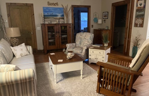 2 dormitorios con camas tamaño queen, sofá cama queen y completo. 2 baños completos con bañera de hidromasaje en el dormitorio principal con 2 calentadores de agua, 2 salas de estar con TV, cable completo y TV en las dos habitaciones, cocina completa. Lavandería w / lavadora y secadora, sala de tres estaciones seleccionados. , Totalmente amueblado, parrilla de gas, pozo de fuego al aire libre con madera en el sitio.