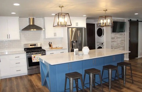 Al instalarte en este alojamiento de 5 dormitorios y 3.5 baños, encontrarás una sala de estar y aire acondicionado. Disfruta del wifi, de la televisión y del reproductor estéreo. El cuarto de baño incluye un secador de pelo, toallas y papel higiénico. La cocina está equipada con horno, placa de cocina y frigorífico, además de microondas y isla de cocina. Y gracias a la lavadora y la secadora, podrás viajar con poco equipaje. Otras comodidades incluyen ropa de cama, una tabla de planchar, calefacción y una mesa de comedor.