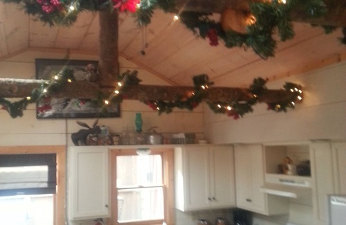 Bañera de hidromasaje privada, cubierta grande, TV de pantalla plana de 40 pulgadas con aplicaciones integradas, reproductor de DVD Blu-Ray con aplicaciones integradas, Internet inalámbrico de larga distancia e inalámbrico de alta velocidad (sin satélite o cable), y lavadora y secadora. También encontrarás una cocina completamente surtida con porcelana vintage y todo lo que necesitas. La cabina de 900 pies cuadrados está bellamente decorada con arte popular y antigüedades y tiene una gran biblioteca de novelas de misterio para grandes y pequeños. Afuera hay una gran cubierta envolvente con mesas y sillas, un pozo de herradura y un pozo de fuego y senderos para caminar en 3 acres de tierra privada.