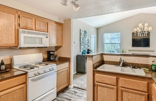 Este alojamiento de 2 dormitorios y 2 baños cuenta con una sala de estar, un comedor, chimenea y aire acondicionado. El cuarto de baño incluye un secador de pelo y toallas. Prepara una comida casera en la cocina, equipada con horno, placa de cocina y frigorífico, además de cafetera y tetera, máquina de hielo y microondas. Y como podrás aprovechar la lavadora y la secadora, no te hará falta llevar mucho equipaje.
