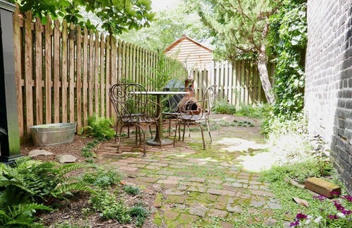 - Relájese con su café matutino en el jardín encantado con chiminea y un estanque de peces al aire libre durante los meses más cálidos (vea si puede ver a 'Nicoli ", el pez residente) el acceso al patio trasero está restringido después de las 7 p.m..