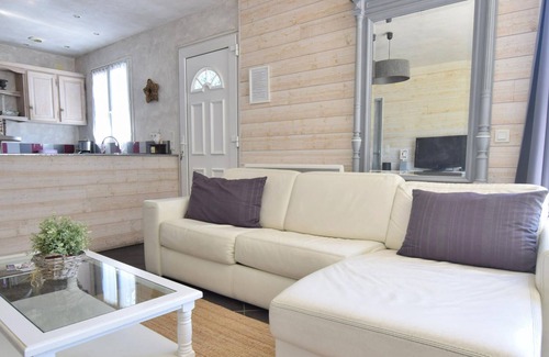 Esta agradable casa de vacaciones de planta baja con un gran jardín y luminoso espacio de vida en una casa de madera no muy lejos de las playas de arena de la Côte Fleurie y el triángulo de oro de Honfleur, Deauville y Pont-L'Êvêque exuda acogedor.