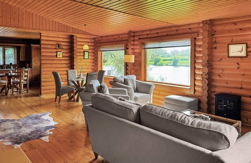 Un entorno único. Disfrute de unas vacaciones tranquilas desde este hotel junto al lago que también cuenta con pesca privada y vistas espectaculares. Todo en la planta baja. Suelos de madera en toda la casa.