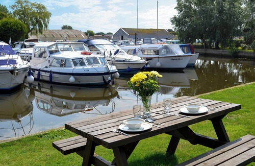 Explore los Norfolk Broads en una lancha motora, o simplemente relájese en el área de descanso de esta casa flotante y disfrute de las vistas a la orilla del río. Todo en la planta baja.