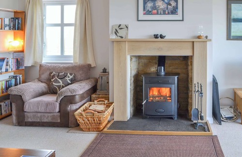 Sala de estar: Con estufa de leña, TV de 32 "con canales Freeview y reproductor de DVD.