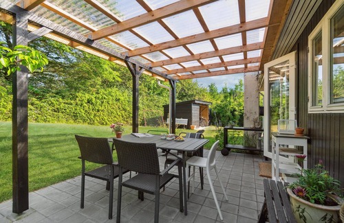 A sólo unos cientos de metros del Limfjord, esta acogedora casa de vacaciones le da la bienvenida en un paisaje montañoso y suavemente ondulado. El interior, decorado con esmero, causa una encantadora impresión y ofrece el marco perfecto para unas relajantes vacaciones en familia. Disfrute de las comidas en el luminoso invernadero con vistas a la vegetación y pase veladas agradables en el salón con el crepitar de la chimenea de fondo. El idílico jardín ofrece varios rincones de terraza y una zona verde para divertirse y jugar.