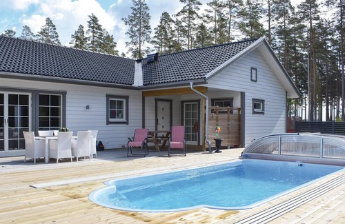 Alojamiento de 3 habitaciones en Tranås Se encuentra en Tranas. Alojamiento de 3 habitaciones en Tranås ofrece alojamiento, con Piscina, Piscina privada, Niño amigable, Entre otras comodidades. Estas características Casa Piscina, Piscina privada, Niño amigable, Para que su estadía sea cómoda.