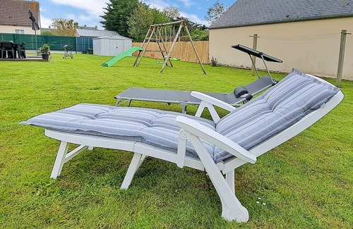 Viaje aquí con su familia ampliada y disfrute de esta casa de vacaciones contemporánea con todas las comodidades e instalaciones modernas. El interior ha sido diseñado pensando en el estilo y la decoración, creando un ambiente acogedor. Relájense juntos en los sofás o preparen sus platos favoritos en la cocina abierta. Después, reuníos para cenar en la acogedora terraza. Más tarde, tus hijos podrán corretear y jugar en el parque infantil del jardín. Es el campamento base ideal para familias que buscan bienestar y relajación, combinando baños de mar, comidas veraniegas en la barbacoa y descubriendo el Canal de la Mancha.