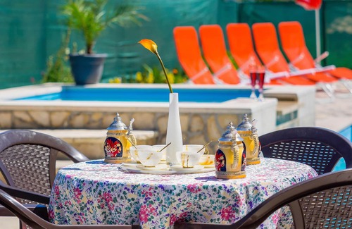 Esta casa de vacaciones es una casa adosada y está situada en un pequeño pueblo no muy lejos de la ciudad de Labin y del atractivo complejo vacacional de Rabac. El lugar Rabac es conocido por hermosas playas de guijarros y aguas cristalinas del mar. La casa de vacaciones consta de 5 apartamentos con entradas separadas y por lo tanto es adecuado para varias familias o grupos de amigos que quieren pasar sus vacaciones juntos, pero no quieren renunciar a su privacidad. Un apartamento está en la planta baja y otros 4 en la 1ª y 2ª planta. La piscina del jardín proporciona refresco durante los calurosos días de verano. En Labin, varios eventos proporcionan entretenimiento durante el verano.