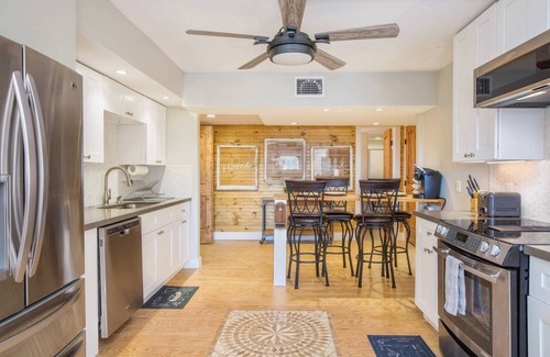 Los alojamientos incluyen una cama king-size; dos reinas y dos gemelos. Otras comodidades incluyen: una cocina totalmente equipada con electrodomésticos de acero inoxidable; DirectTV; e internet. Un patio exterior brinda a los huéspedes la oportunidad de disfrutar de las excelentes vistas, la vida silvestre (es probable que veas ciervos) y los hermosos robles que salpican la propiedad. Todo está configurado y listo para ayudarlo a hacer de esta maravillosa casa su hogar lejos del hogar.