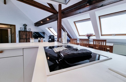 Alpha Apartments: Dachstudio - Stil & Eleganz, 2BR posee 2 Dormitorios , 1 Baño, y ocupación máxima de 4 people. El alquiler mínimo para esta propiedad es 1 nights, Pero esto puede cambiar dependiendo de la temporada que planee quedarse. Los invitados anteriores han dado un buen calificado, y VRBO lo etiquetó como un Apartamento de primera calificación debido a los excelentes servicios prestados por el propietario o gerente de este Apartamento, y ha proporcionado constantemente excelentes experiencias para sus invitados. La mayoría de las familias o invitados que lo usan lo recomiendan a sus amigos y algunos son invitados repetidos. Apartamento tiene un vecindario amigable, y el Ostviertel tiene lugares interesantes para visitar. Si quieres aprender más sobre el Apartamento en Ostviertel, Como lugares para visitar y cosas para hacer cerca, puede consultar a continuación para obtener más información.