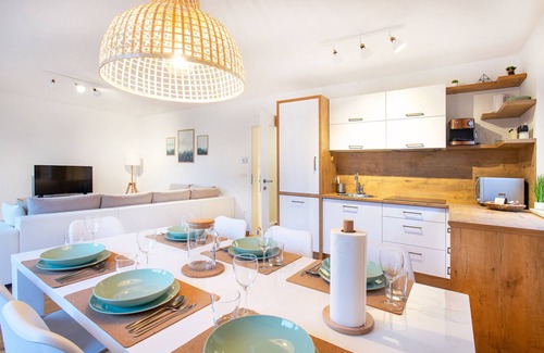 Alpine Home Apartment es un nuevo apartamento ubicado en el centro de Bohinjska Bistrica, a poca distancia de todo lo que pueda necesitar. Es adecuado para 2 familias con niños o una familia que viaja junto con los abuelos. La unidad es una planta baja de una casa nueva con un amplio jardín y una terraza de madera. La calle es tranquila, sin tráfico. Delante de la casa hay 2 plazas de aparcamiento disponibles. Desde la ciudad tienes un servicio de autobús gratuito al lago Bohinj y un bonito sendero para bicicletas.
