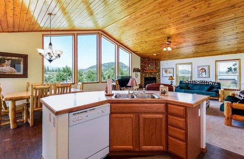 Este alquiler de tres habitaciones cerca de Pagosa Springs es el destino ideal para todas las actividades de montaña. Disfrute de una serie de características deseables en el hogar, que incluyen una chimenea de gas, una cocina abierta y una cubierta envolvente.