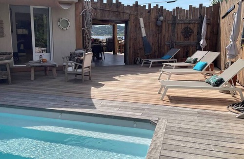 ubicación excepcional !!! villa a quince metros del mar !!!! Frente al golfo de Santa Manza con aire acondicionado, gran terraza de madera con piscina, relajación garantizada,