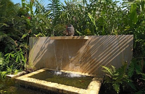 Acunados en el exuberante abrazo del jardín se encuentran la villa principal y tres amplias habitaciones con baño. El hall de entrada, la gran sala y el área de comedor se abren a una amplia terraza completa con un cómodo pabellón de asientos de bambú, un gran jacuzzi climatizado y una piscina de borde infinito. Unida a la villa principal por una pasarela ajardinada se encuentra la villa de invitados de cuatro dormitorios, todas con amplios cuartos de baño y con salida a balcones con vistas a la bahía.