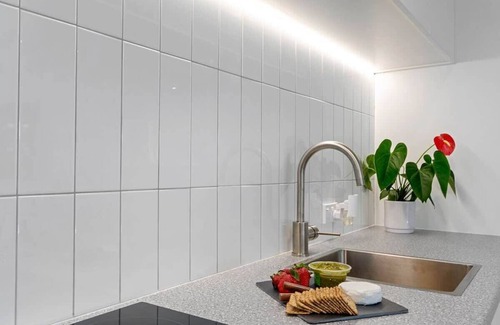 La cocina está equipada con frigorífico, lavavajillas, microondas y utensilios de cocina. Y no tendrás que llevarte ropa de más, porque también hay acceso a una lavandería. Otras comodidades incluyen ropa de cama, una tabla de planchar, aire acondicionado y calefacción.