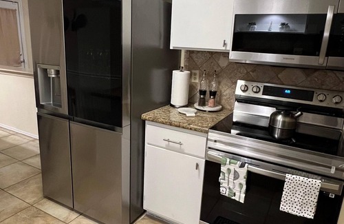 Located in Katy, enjoy what this 3-bedroom house has to offer. This charming property features 1 king bed and 2 queen beds, perfect for a cozy retreat. With amenities like a hair dryer, heating, and AC, guests can relax and unwind. The 2 bathrooms include a bathtub for a soothing soak after a day of exploring. We hope you'll enjoy your stay at our house.Right off i10 and near all major retail and restaurants makes this location truly the best.
