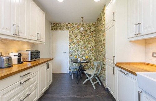 Cocina totalmente equipada, lavadora, secadora y lavavajillas.