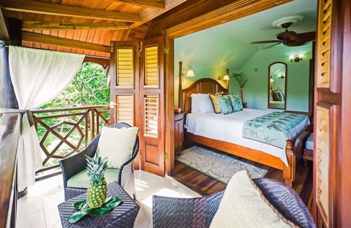 The Villa has five bedrooms that are each named after a nearby tree. Each bedroom has a veranda, ensuite bathroom, ceiling fans, and flatscreen Tvs. The Main House has three bedrooms that are each king suites, although one can be made into a twin suite. The Cherry Apartment and The Cottage both have one king suite with exterior access only. There’s a queen sofa bed in The Cottage as well, so it can sleep four in total. The villa is kept in pristine condition by a full staff, including a daily gardener, butler, housekeeper, and security. There’s also a caretaker to oversee operations.
