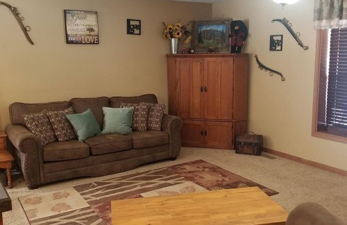 American Pines Lodge es una casa de 3 dormitorios y 2 baños que puede alojar hasta 12 personas con una cama queen en cada habitación, un sofá cama en la sala de estar y 4 cunas portátiles. Hay 2 baños completos, uno de ellos es un baño principal con bañera profunda, cocina totalmente amueblada, sala de estar con TV vía satélite y reproductor de DVD, así como cubiertas delanteras y traseras con parrilla de propano y área de patio con fogata. Este es un dúplex lateral x lateral y nosotros, los propietarios, vivimos en la otra unidad. Hay una puerta de doble cierre entre las 2 unidades. Ubicado a solo 5 millas del monte. Rushmore y 2 millas del centro de Keystone, American Pines Lodge está cerca de la mayoría de las atracciones principales, pero se encuentra en 4 acres de pradera de montaña en un hermoso valle con Battle Creek que atraviesa la propiedad. Nuestra otra lista, American Pines Cabin, también se encuentra en la misma propiedad. Hay un parque infantil y cancha de baloncesto disponible para nuestros huéspedes. Se puede acceder a las rutas de senderismo y ciclismo desde la propiedad, así como a los alquileres de ATV / UTV a través de Black Hills Wilderness Edge para salir del camino trillado y experimentar Black Hills. Ven a ver por qué hemos sido bendecidos de llamar hogar a Black Hills y queremos compartirlo contigo.