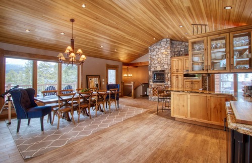 Hermosa montaña contemporánea con excelentes vistas de Continental Divide y Baldy Mountain y ubicada cerca de Breckenridge Ski Resort y Golf Course para divertirse durante todo el año. Hay una gran familia y un comedor con chimenea y muchos asientos cómodos, además todas las habitaciones tienen baño privado. El hermoso dormitorio principal tiene chimenea, bañera japonesa y ducha de vapor. La cocina está bien equipada con todo lo necesario para preparar excelentes comidas. Dos terrazas, parrilla y un patio con jacuzzi y una mesa de fuego. Hay 3 televisores, para la transmisión de alta velocidad de sus programas favoritos. Hay muchos juegos de mesa para el público no digital y una pequeña biblioteca para los lectores.