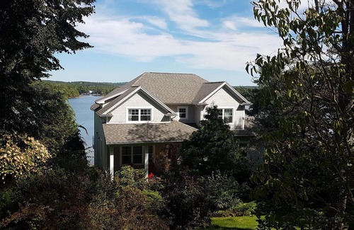 El gran césped inclinado conduce a los 100 pies de la zona ribereña privada donde te encantará pasar tus días nadando y tomando el sol en el muelle. ¡El agua es profunda y clara desde el muelle flotante e ideal para amarrar tu bote o saltar para un baño!
