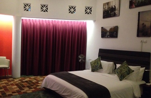 Con una entrada propia, esta amplia habitación, baño de lujo y balcón se encuentra en un entorno de jardín. La habitación está equipada con todas las necesidades, desde Wifi y televisión hasta aire acondicionado, mesa de trabajo y gabinete para ropa. El baño tiene doble lavabo, inodoro y zona de ducha separada. Al lado hay un restaurante relajado con terraza, que ofrece un menú indonesio / europeo. El desayuno se sirve en el restaurante, donde también se puede solicitar el servicio de habitaciones. Suficientes asientos para relajarse en su balcón, en la terraza o en el colorido jardín con estanques para peces. La ubicación está cerca del bullicioso centro de Salatiga, con muchas tiendas y marcas locales todos los días.
