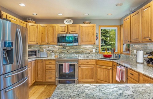 Nuestra familia se queda aquí 20 fines de semana al año, por lo que todas las comodidades del hogar están disponibles para usted; incluye mesa de comedor grande para que todos puedan sentarse juntos, amplia cocina totalmente equipada con especias y aceites para que pueda preparar comidas deliciosas, cómodas camas con ropa de cama de lujo para una buena noche de descanso, el sistema de entretenimiento maravilloso con DVD y colección de música completa para entretener Por la noche.