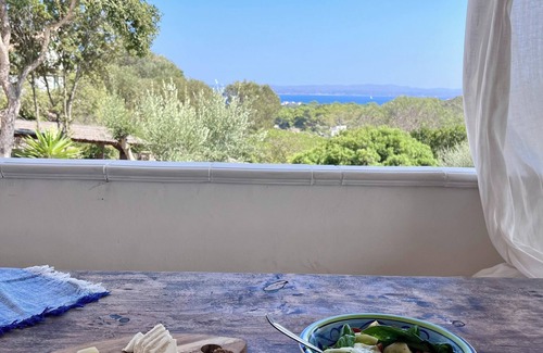 La villa es acogedora y espaciosa, se encuentra en una colina lejos de los caminos trillados y tiene una bonita vista al mar.