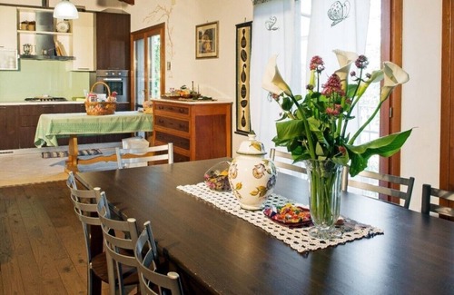Amplio apartamento en villa para 8/10 personas en la colina verde de Rimini Se encuentra en Rimini. Amplio apartamento en villa para 8/10 personas en la colina verde de Rimini ofrece alojamiento, con TV, Silla de ruedas accesible, Balcón/Terraza, Entre otras comodidades. Estas características Apartamento TV, Silla de ruedas accesible, Balcón/Terraza, Para que su estadía sea cómoda.