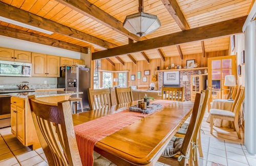 Este moderno hotel de montaña con una bañera de hidromasaje en el patio trasero es un lugar tranquilo para experimentar toda la belleza natural y las aventuras al aire libre en el monte. Hood tiene para ofrecer. Cuenta con magníficas vistas a los pinos, una cocina completa, una sala de estar cálida y acogedora con chimenea y acceso a beneficios como una piscina de temporada y canchas de tenis y baloncesto.