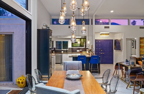 Amplio Oasis del desierto de techo alto Se encuentra en Racquet Club South. Amplio Oasis del desierto de techo alto ofrece alojamiento, con Mascota amigable, TV, Piscina privada, Entre otras comodidades. Estas características Casa Mascota amigable, TV, Piscina privada, Para que su estadía sea cómoda.