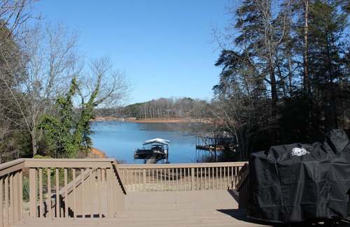 Bellamente decorado dos dormitorios y dos baños hogar, completamente remodelado en aguas profundas. Muelle cubierto en una cala privada con un resbalón para su barco. El muelle fue revestido con una plataforma compuesta en junio de 2019. Es el lugar perfecto para practicar kayak, canotaje, natación y pesca. Cocina totalmente equipada con electrodomésticos nuevos de acero inoxidable, cafetera Keurig y hornos dobles. Impresionantes vistas desde todas las habitaciones a través de puertas corredizas de vidrio que van del piso al techo. Salga a la enorme terraza junto al lago con sofá seccional, mesa de comedor y parrilla. El garaje completamente aislado tiene una pantalla plana de 50 ", un refrigerador extra (ideal para carnada o su bebida favorita), flotadores y cañas de pescar. Televisores inteligentes en todas las habitaciones con internet inalámbrico para todos los servicios de transmisión.