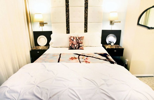 La SUITE JAPONESA CHERRY BLOSSOM sigue el espíritu del festival anual Cherry Blossom de Washington DC. Esta espaciosa suite cuenta con una cómoda cama de colchón de felpa Cool Size Queen, una mesa de estudio, un baño privado con bañera, una claraboya soleada, un asiento de bidé con calefacción y un amplio espacio de almacenamiento en el armario.