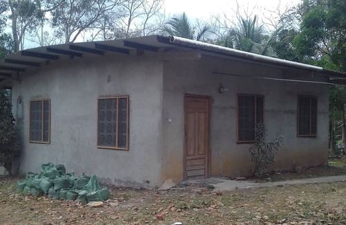 Casa de campo asequible en alquiler en Los Pavitos, Darién. Viene con dos camas dobles y ropa de cama, toallas, dos mesas, dos sillas de madera, tres taburetes, estufa, refrigerador, primer tanque de gas para cocinar. La electricidad y el agua están incluidos en la estancia diaria a corto plazo. También hay acceso a una casa de paja donde se pueden colgar hamacas para relajarse; También hay una mesa de comedor con taburetes primitivos de madera. Paseos a caballo disponibles a $ 5. 00 por hora.