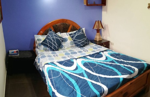 Casa pequeña para dos personas, una habitación, un baño, cocina (licuadora, microondas, estufa, vajilla, cubiertos, artículos de limpieza básicos para la cocina y el baño, área de barbacoa, área de hamacas, garaje grande, sala de estar adicional. Decoración moderna / nativa, disfrute de un ambiente familiar, relajado y muy tranquilo. Jardín interior con plantas autóctonas y árboles frutales, lavandería disponible. Alquiler de bicicletas disponible.