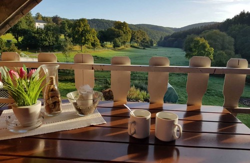 Más moderno que FeWo Heidi y en el ático con una vista aún más hermosa desde el balcón hacia el valle: nuestros nuevos 77 metros cuadrados grandes, amueblados con amor 3. Apartamento en una ubicación fantástica en medio de la naturaleza.