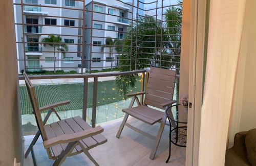 Nuevo y moderno apto. 2 piso,piscina, 3 habitaciones, 2 baños, 2 camas matrimoniales, 2 camas en una habitación. protecciòn en hierro, vigilancia en la entrada,