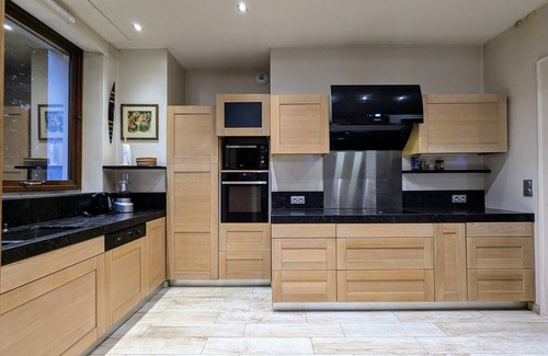 – una cocina totalmente equipada: 4 placas de inducción, horno, frigorífico con congelador, microondas, lavavajillas, lavadora de 3Kg, cafetera Nespresso, tostadora, hervidor de agua, utensilios de cocina.
