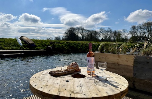 Una pequeña terraza y un embarcadero pertenecen al frente del apartamento. Allí puede lanzar su caña de pescar a su gusto o disfrutar de la maravillosa tranquilidad con una vista de los barcos Hargervaart. En la parte trasera, el apartamento limita con un pequeño dique.